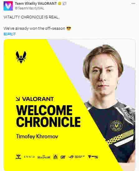 Timofey Khromov | Chronicle加入队伍,推文大意如下: