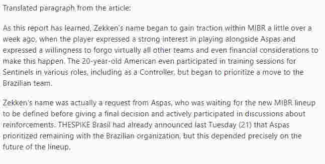 据本报道,zekken的名字在一周多前就引起MIBR的关注,当时他也表达出了与