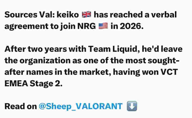 NRG达成口头加盟协议,预计将在2026赛季效力VCT美洲联赛。