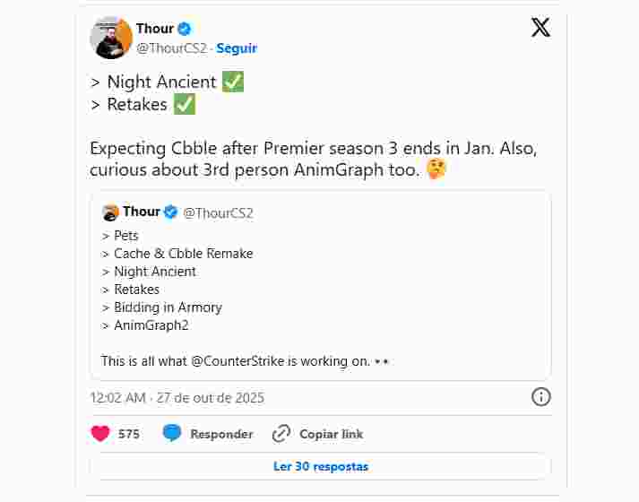 知名数据爆料人Thour于本周在社媒发文,暗示Cobblestone地图将回归CS2,以及Ancient正在制作夜晚版本。据他透露,Cobblestone地图将在2026年1月第三赛季天梯结束后正式回归。