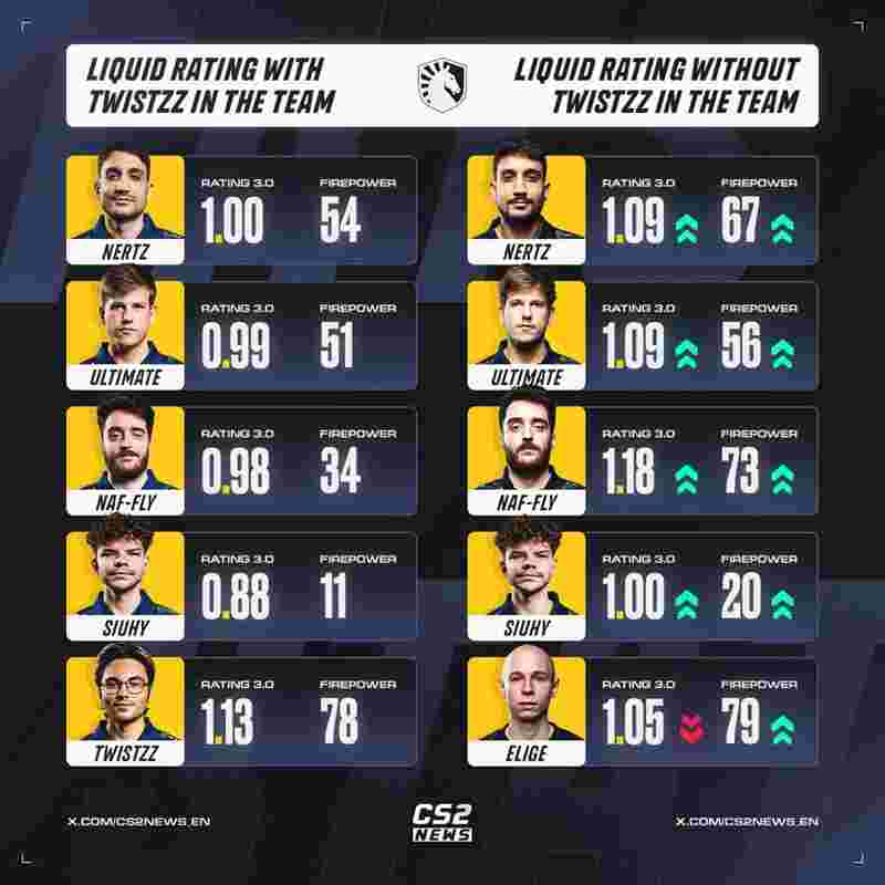 日前CSer SIUHY_GOAT_IGL发现了一个有趣的现象,在Twistzz离开