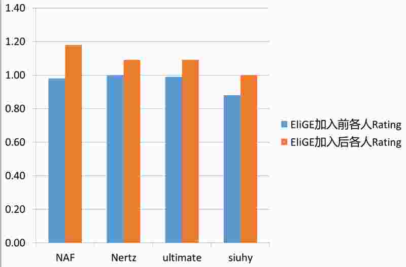 受益最显著的是NAF。在EliGE入队后,NAF的Rating从0.98跃升至1.18,火力值更是从34翻倍至73,多次在僵局中完成关键击杀。对枪时的他也显得更为自信,这在以往并不多见。