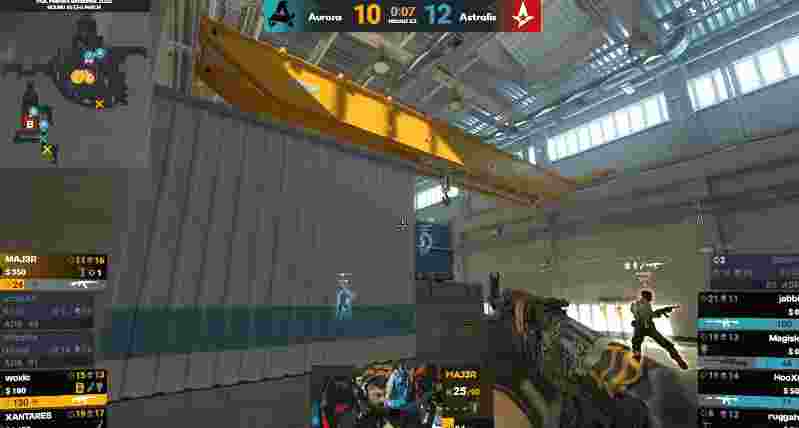 次回合Aurora强起防守没能成功,双方前期比分1-2。来到上半场的第一个长枪局,双方开局外场做默认,但狠人在外场被混烟混死,woxic在铁板大狙拿到击杀,随后少打多A队没能拿下,双方2-2战平。随后Aurora起势连续拿分,A队开局没有找到比赛节奏,比分一路被领先到2-6。比赛来到第九回合,Hooxi选择放慢节奏,慢推内场拿信息,最后选择上管夹A,jabbi成功双杀突破成功拿下包点控制权埋下雷包,A队拿回一分。比赛来到上半场的最终回合,A队开局提速进黄房,随后拿到首杀,随后双方交火人头互换,最后三打三Hooxi成功在B点埋下雷包,随后凭借优秀的交叉火力拿下残局,上半场比分定格在7-5。