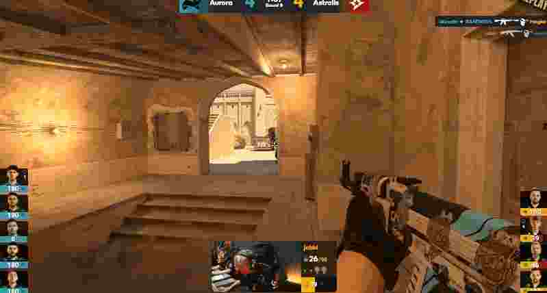 来到图二,上半场的A队先作防守方开局,Aurora直接提速爆内场,Staehr手感火热回防直接拿下双杀,随后配合队友拿下手枪局。
