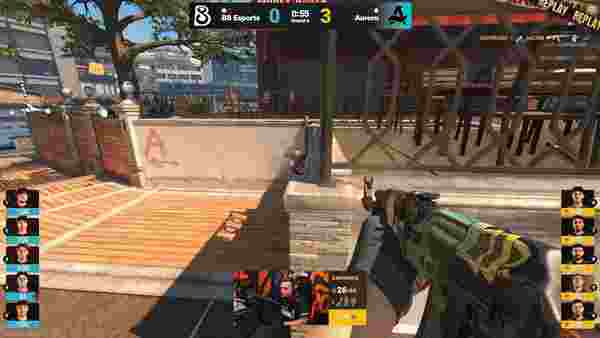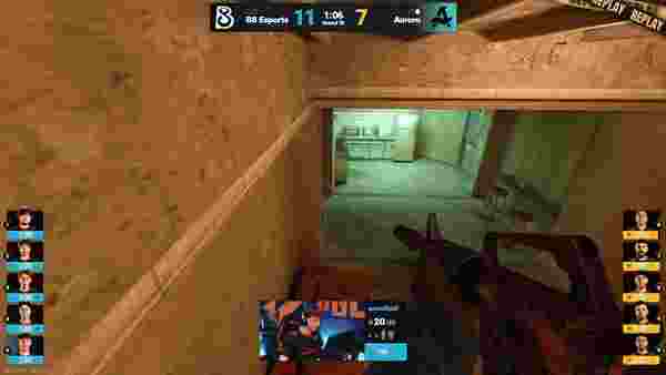 Aurora先做进攻方。手枪局,土匪进攻只有单人npl防守的A区,放下雷包三打三,jottAAA和XANTARES双人五杀拿下手枪局。