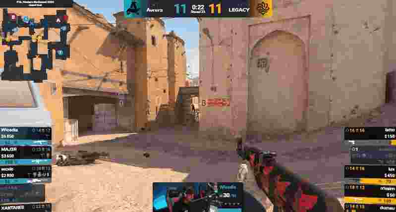 但次回合Legacy通过中路夹B战术打出了一把漂亮的eco翻盘,追回一分,比分8-6。第17回合,双方这一回合各自为战,中路B门都爆发人头,最后时刻Legacy残余人员选择打A,但狠人躲在平台吹风机拿下双杀,Aurora拿下这一分,比分8-9。第18回合latto凭借一把沙鹰的优秀发挥砍下单局三杀再帮队伍拿下一分,随后Aurora陷入经济劣势再丢一分,比分11-8。第20回合,T选择A1骚扰企图一波进入,但被CT道具拖住,最后15秒双方开爆,但是Legacy给自己留的时间实在太少,最终被逐个击破,Aurora追回一局。第22回合,Legacy四人抱团偷摸A小,saadzin大狙偷摸警家但是被woxic蓝车大狙处刑,随后T进攻A小也被瞬间瓦解,Aurora追平比分11-11。第23回合,saadzin鸟狙开局拿到首杀,但woxic中门大狙随后也还以颜色拿回一个人头,最后20秒T集合中路,但被wicadia一人接住三个,Aurora拿到赛点。第24回合,Legacy选择A小同步A大,但是woxic大狙和狠人依旧发挥优秀,Aurora一鼓作气13-11直接拿下了比赛。