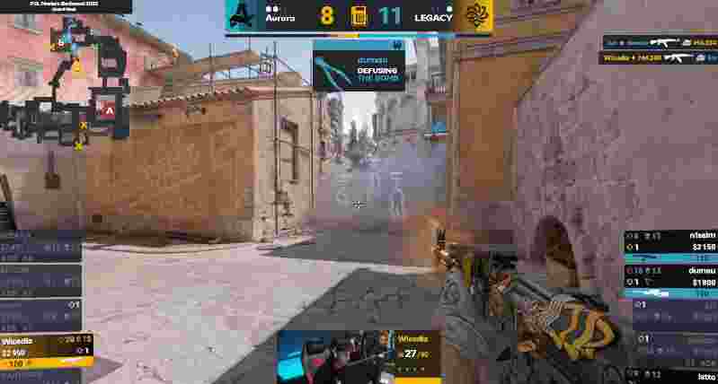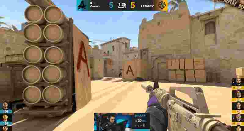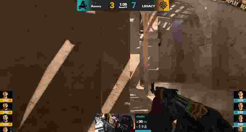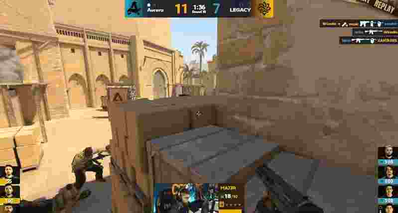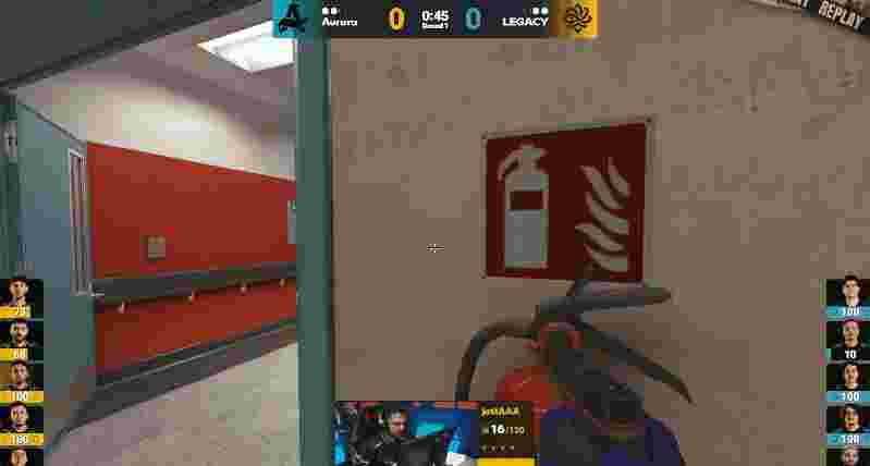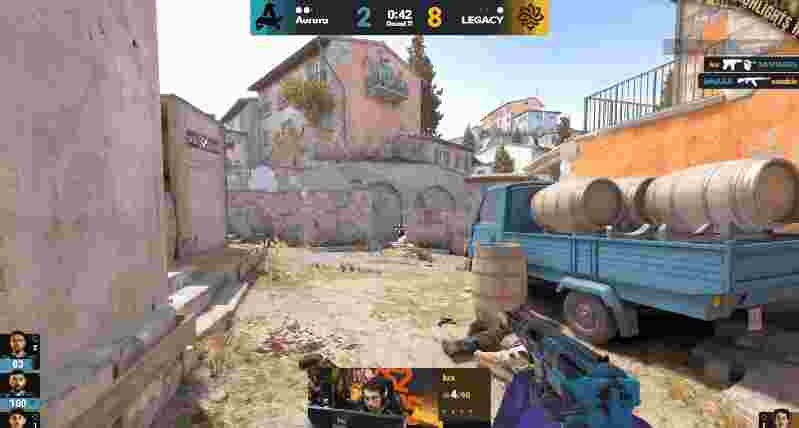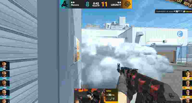 来到图二,上半场的Aurora先作防守方开局,Legacy开局直接提速一波进A,随后双方人换人,但Aurora枪法更具优势拿下手枪局。
