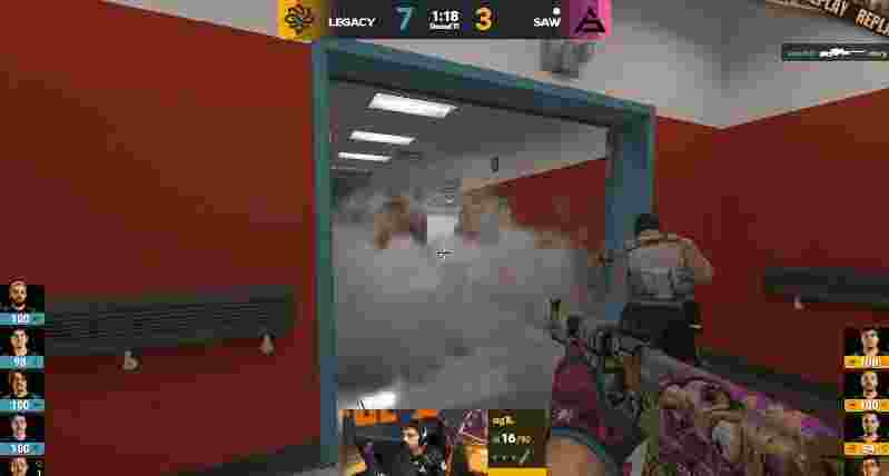 图一,上半场的SAW先作防守方开局,Legacy开局直接提速五人直接进A并且成功埋下雷包,但是CT众人火力在线,各点开花,ag1L砍下双杀,SAW拿下手枪局。