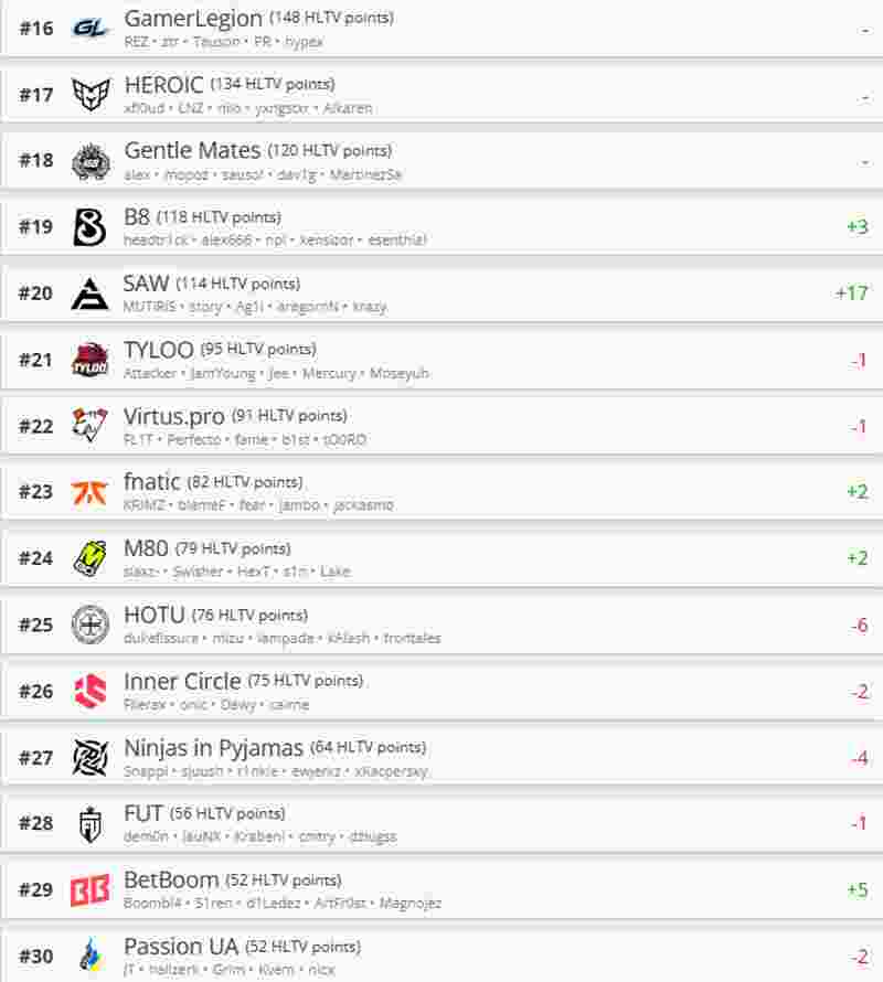 一起看看最新一期HLTV世界排名吧。
