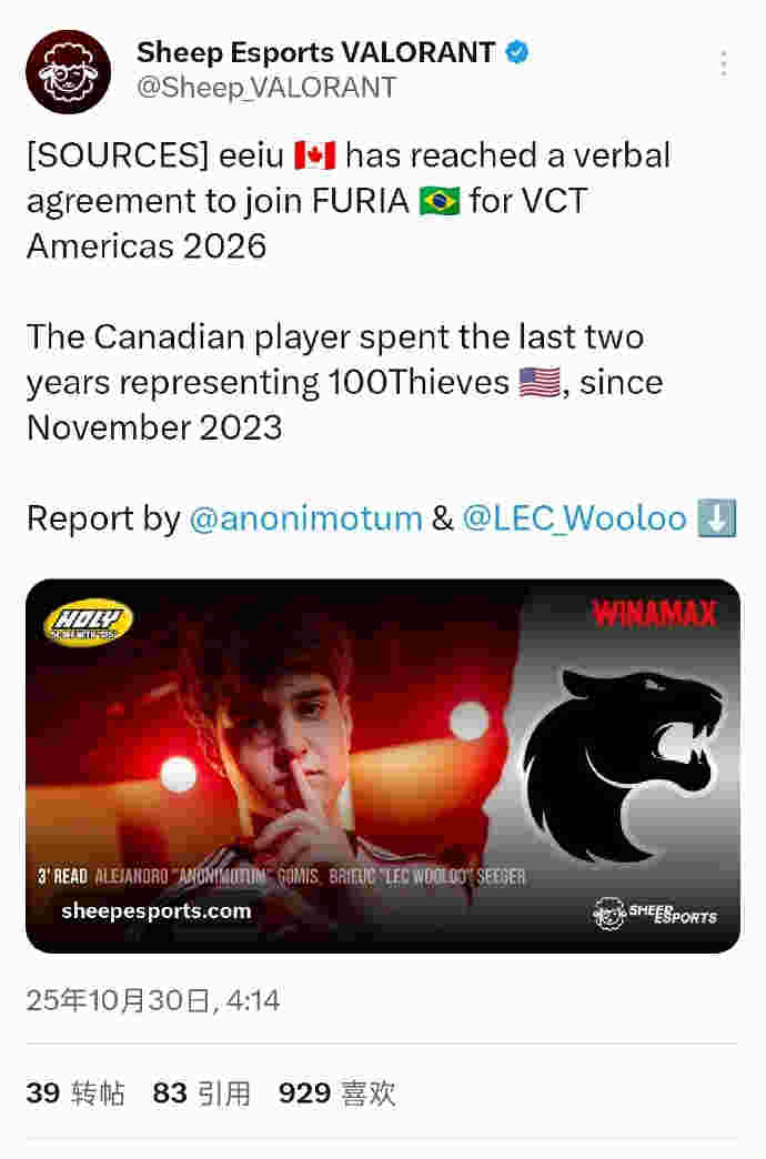 V社世界排名1104:FURIA登顶,TYLOO降至21名