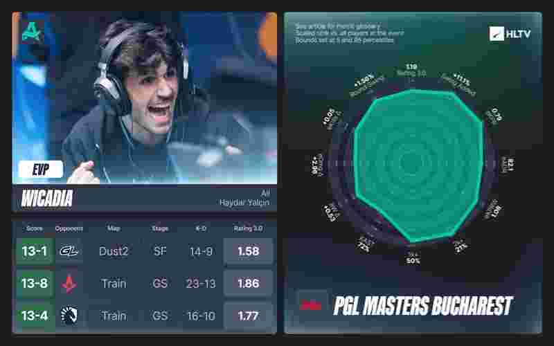 Eternal Fire青训队的毕业生,Wicadia早已不再是XANTARES的副手。在布加勒斯特站,他在获胜回合中的输出与队内明星选手不相上下(1.11 KPRW,110.4 ADRW)。