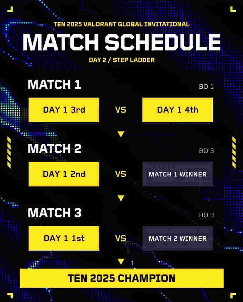 决赛:G2胜者 vs 小组第一(BO3),胜者即为本次2025TEN全球邀请赛冠军。