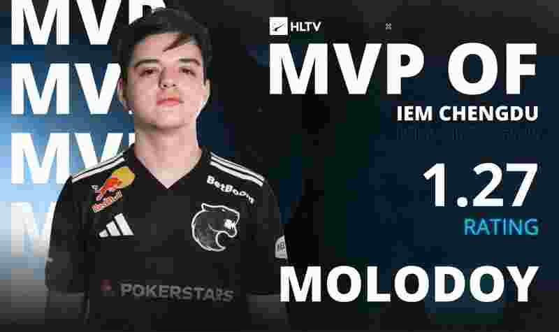 而molodoy凭借在本次赛事的多次优秀发挥成功夺得IEM成都MVP!这位来自哈萨克斯坦的狙击手今年已第二次斩获“最有价值选手(MVP)”。年仅20岁molodoy未来可期,这也是这位新星在其职业生涯首年中斩获的第二座MVP——今年九月他已在FISSURE Playground 2赛事中荣膺MVP。