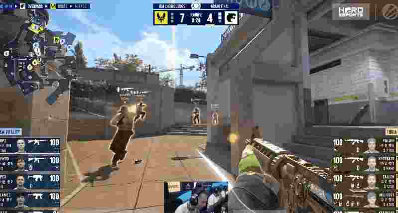 易边再战,小蜜蜂直接选择集合爆A,molodoy双枪没能拿到多杀被补,但是YEKINDAR就是狂主动摸出A大秒杀ZywOo再杀mezii拿下三杀,ropz然后拿下双杀但是最终还是黑豹拿下手枪局。