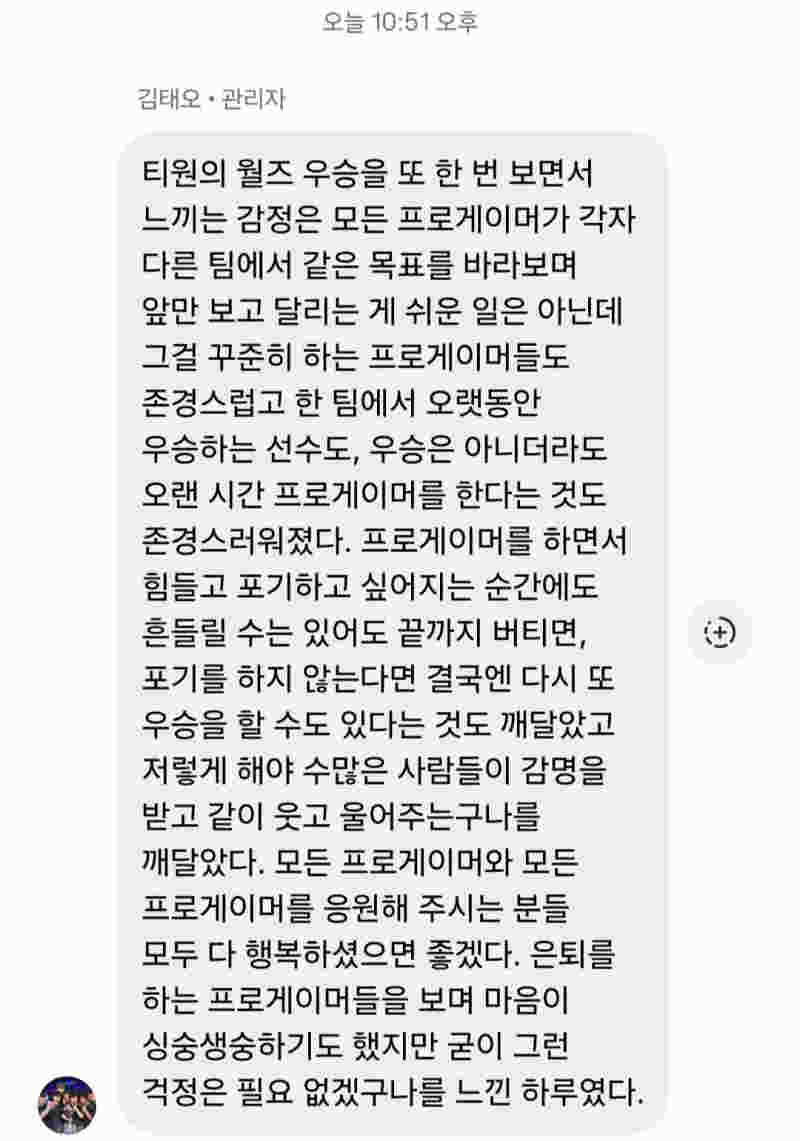 希望所有的职业选手,以及所有为他们加油的人,都能幸福。看到一些选手退役的时候,心里虽然有些五味杂陈,但今天我也意识到其实没必要为他们担心。