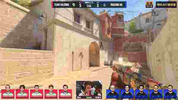 BLAST对抗赛S2次日A组胜者组Falcons对阵Passion UA。图一m0NESY和kyousuke两架马车带领队伍有惊无险先下一城;图二m0NESY再次上演一打四天秀操作战绩领跑全场,Falcons晋级四强。