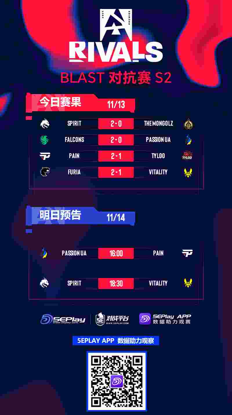明日的1/4比赛,Passion UA将迎战paiN,Spirit对战Vitality。