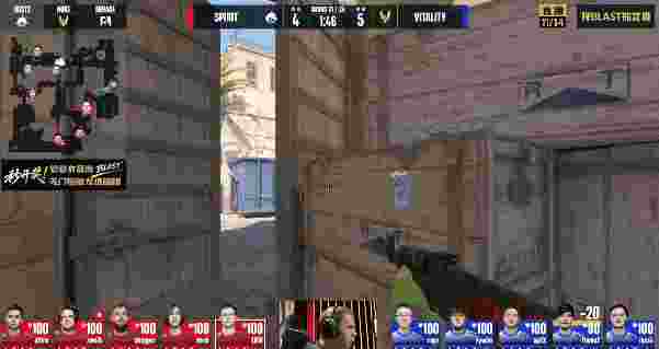 Vitality第三回合再次翻盘并连续拿到三分,比分来到1-4。第六回合,Spirit控图后爆弹打A,但是二楼下ropz顶着火拿到双杀,队友赶到将Spirit打得只剩sh1ro一人无力回天。