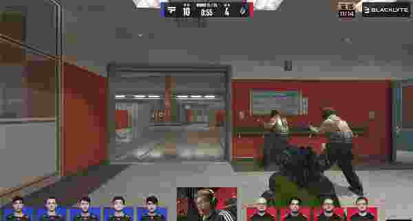 第十回合,开局dav1deuS水箱上拿到外场JT首杀,随后三楼下的hallzerk狙掉过点K1的snow,同时dgt内场架住前压nicx,paiN成功进A安包,剩余CT进入保枪。上半场最后一回合,开局snow混烟杀死外场前压的Grim又下入K1打掉JT,随后hallzerk还以颜色也连收两人,一波激战后paiN成功A点下包,nqz包点大狙收下最后两名回防CT,上半场比分8-4。