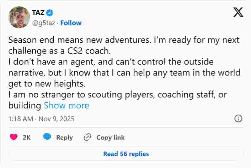 TaZ明确表示,自己希望继续执教一支国际战队,并呼吁那些对其专业知识或备战能力存疑的俱乐部主动联系他。