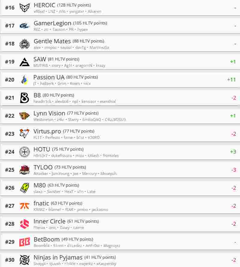 Passion UA,他们也参加了BLAST对抗赛S2,在打进淘汰赛阶段的情况下,世界排名进步11位。