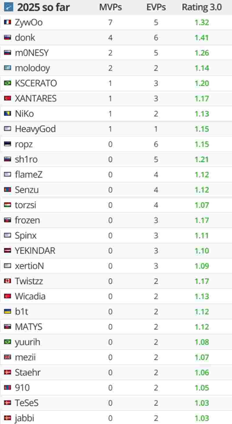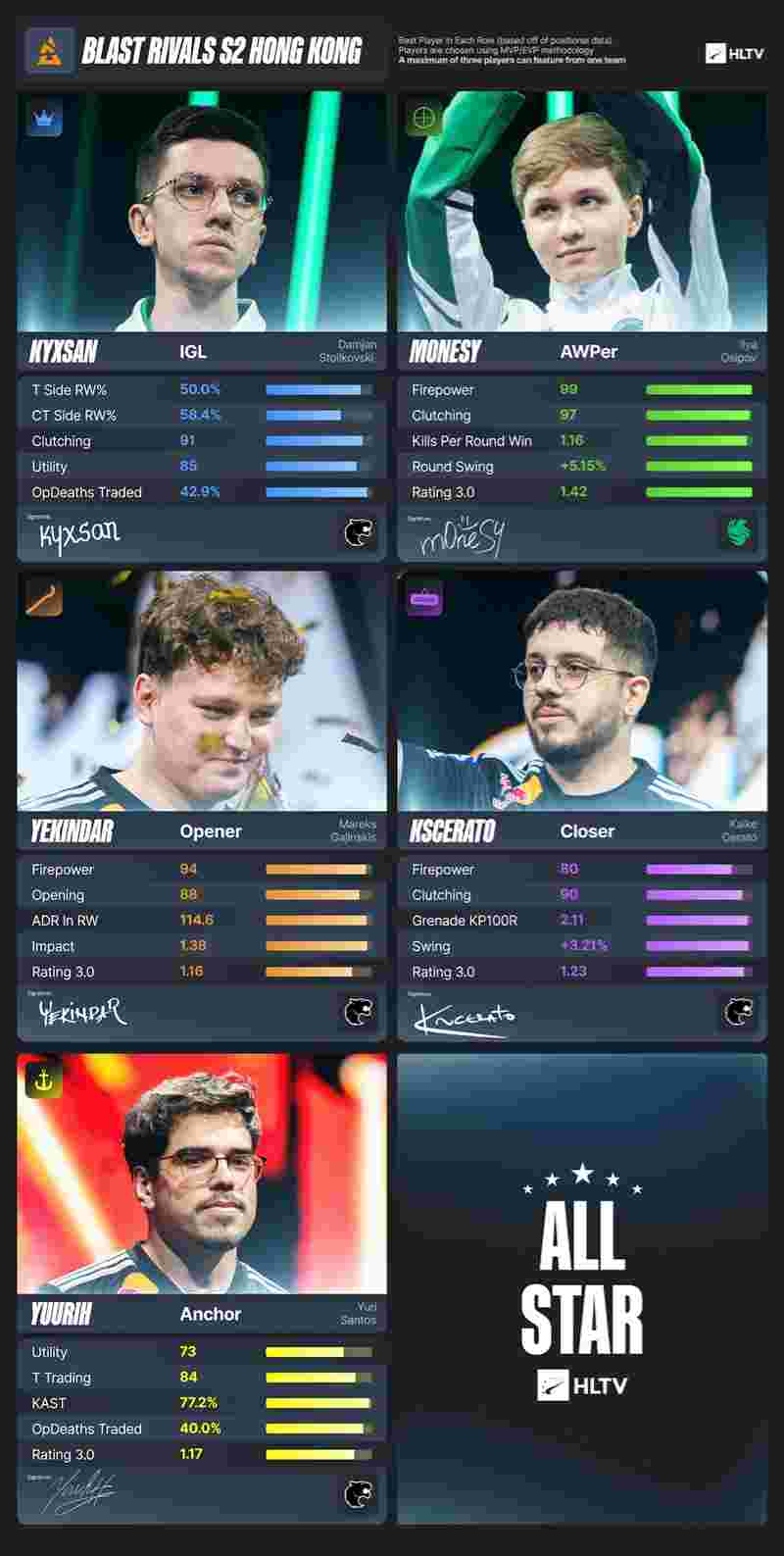 2025 BLAST对抗赛S2最佳选手排名(按顺序):