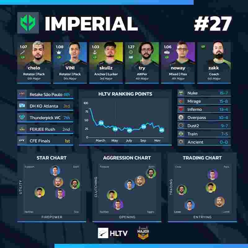 事实:Imperial本年度仅在对阵欧洲队伍的比赛中赢过3次,且均是在Trav赛事中取得的胜利。