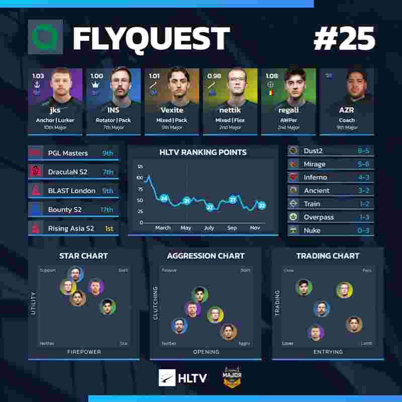 事实:在AZR加入后,FlyQuest对Inferno地图的选择率大幅下降(此前为54%,此后降至13%),同时开始更多选择Dust2地图(选择率44.4%)。