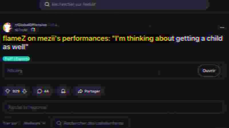 我记得这话是在上海Major期间说的。当时情况是这样的,mezii简直是全程带飞我们,完完全全的carry。他女儿刚出生,所以他请了一段时间假,没跟我们去新加坡...回来训练后,他的状态好到离谱,各种一枪头,发挥得太疯狂了。所以我才会说“要孩子可能是职业生涯的..续航秘籍”,我觉得karrigan和apEX也可以试试这个“秘籍”。