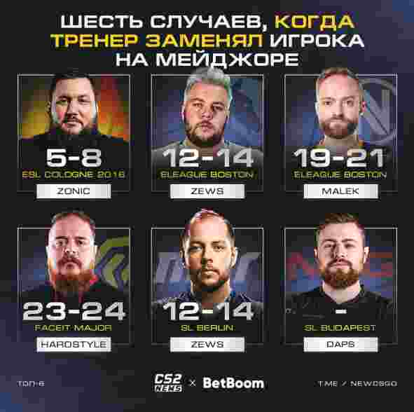 在Valve主办的Major赛事历史中,此前已有五位教练因特殊情况临危受命,替补选手登场参赛,而美国教练daps将成为第六人。以下为历史上五起教练替补出战的案例回顾。