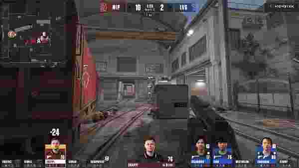 火车,NIP选CT开。手枪局LVG匪楼集合爆弹打B,但NIP见到A区毫无动静已经提前回到3B,面对三重交叉进入包点举步维艰,让高台的r1nkle拿下4杀。 第3回合,开局绿通的Westmelon先拿r1nkle人头,但后续CT的红楼梯摆铺直接拿下EmiliaQAQ和Starry,丢失红楼梯图权的三叶和阿花想去b双双白给 第四回合,开局C4LLM3SU3收下低坡前压的Snappi,sjuush和r1nkle守b后点收下三名T 第五回合,C4LLM3SU3和EmiliaQAQ出匪口双双突破成功,一颗包点火成功清空包点,三叶混死警家拿下胜利 第6回合,开局Starry抢出匪口吃到三颗炸雷直接白给,后续身位的土匪遇到奥拉夫和车尾的交叉火力被全部化解, 第7回合,LVG快抢红楼梯夹A,r1nkle接住一人后光速被补,EmiliaQAQ从匪口杀出直接配合包点火直接清空A区 第8回合,LVG集合进攻B区,但NIP已经收集到匪口没人的信息,面对3人的警察局B区再次进攻失利。 第9回合,sjuush配合Snappi的闪光弹前压低坡收到C4LLM3SU3和starry,z4kr绿通处刑r1nkle,Westmelon断掉红楼梯一人后和大部队集合进攻绿通,打出2换2后z4kr残局判断失误提刀转点被直接收下。 第11回合,r1nkle开局架住peek低坡的C4LLM3SU3,sjuush借助高坡烟又偷一人,剩余土匪想要转A但人数劣势补枪脱节被逐个击破。 第12回合,ewjerkz和Snappi前压红楼梯,后者先偷一个大脚步后撤,z4kr上当又被ewjerkz偷掉,snappi迎着闪光又双杀西瓜和Starry,最后C4LLM3SU3无力回天。
