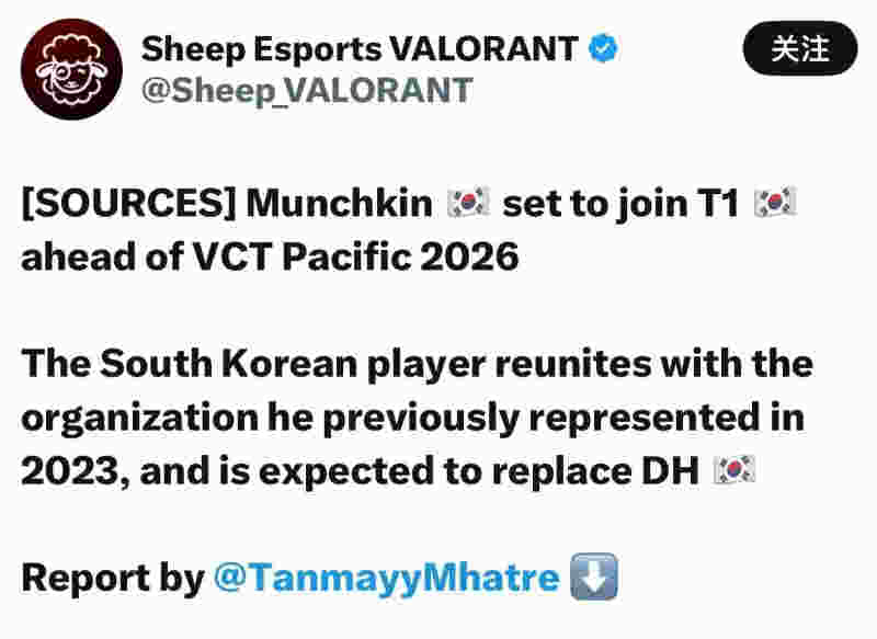 值得一提的是,Munchkin 曾在 2023 年短暂效力 T1,此次回归与老东家再度携手。