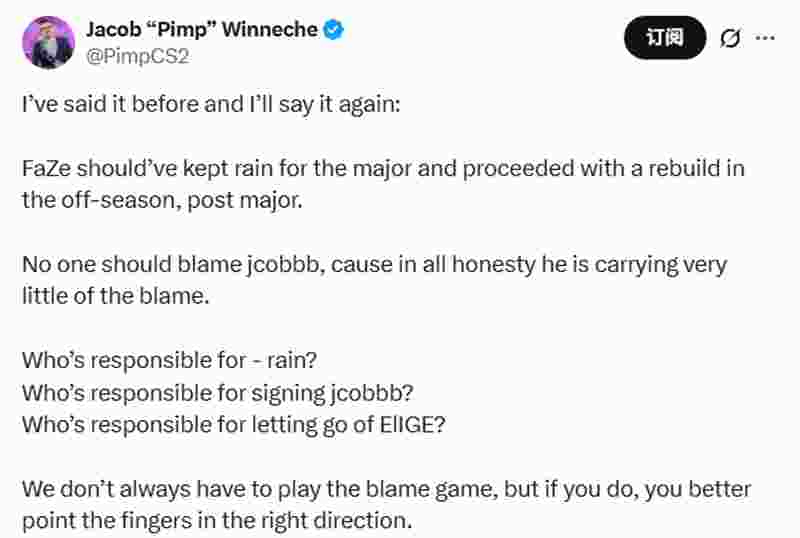 Ninjas in Pyjamas之后,分析师Pimp在社交平台上分享了自己对于FaZe阵容的看法。