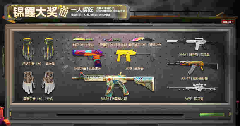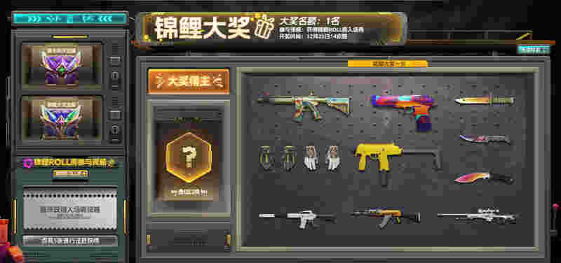 12月25日,我们将在ROLL房中抽取1名幸运玩家,独揽价值过万的终极【锦鲤大奖】——全套精品主战饰品一并收入囊中!