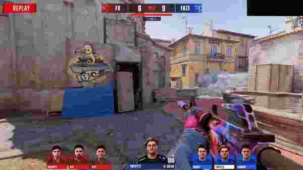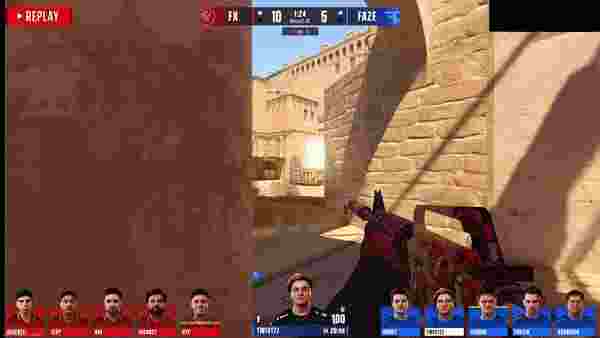 FaZe先做进攻方。手枪局,CT四A反清中路拿信息,虽然拿到五打四优势,但埋伏在近点的总监连断两人,队友转A再清大坑一人,Twistzz三杀拿下手枪局。