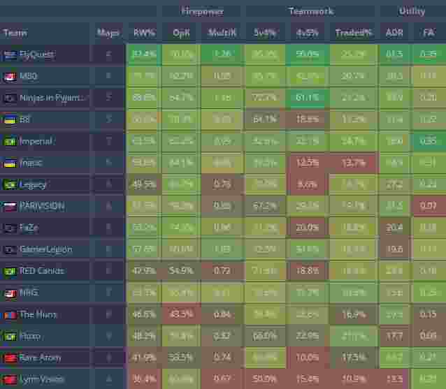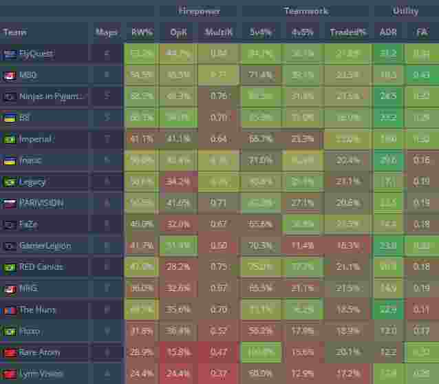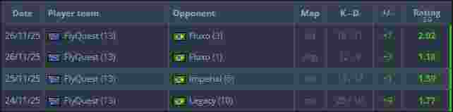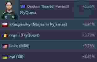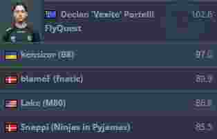 来自FlyQuest的Vexite以1.64的rating碾压众人位居榜首。队伍能以四张图连胜的成绩率先晋级,Vexite在其中功不可没。在对阵