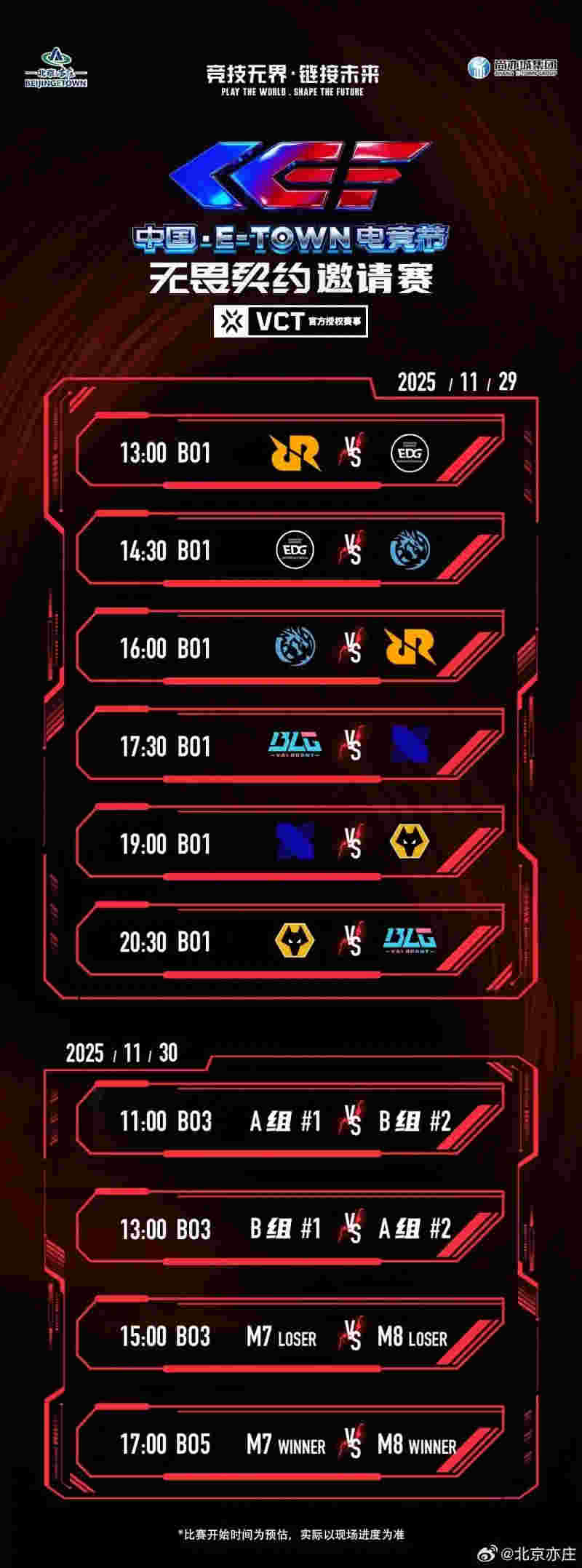11月29日-11月30日第二届中国电竞节超级冠军杯《无畏契约》国际邀请赛赛程: