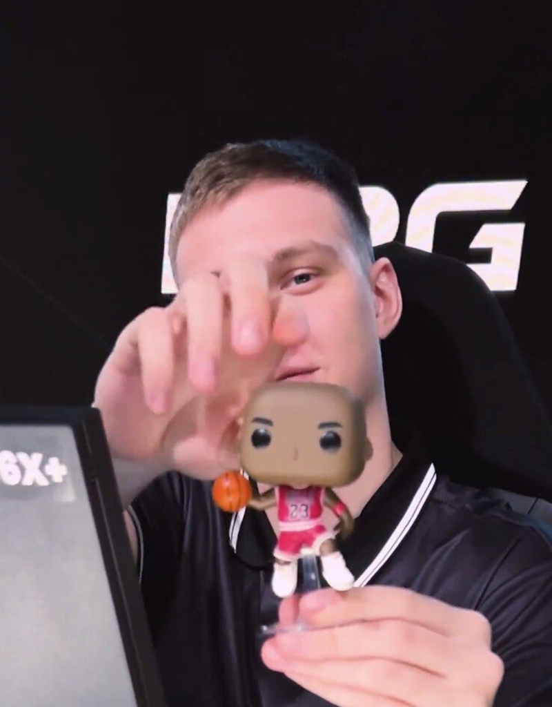 Ninjas in Pyjamas战队狙击手r1nkle选择的吉祥物是迈克尔·乔丹人偶。