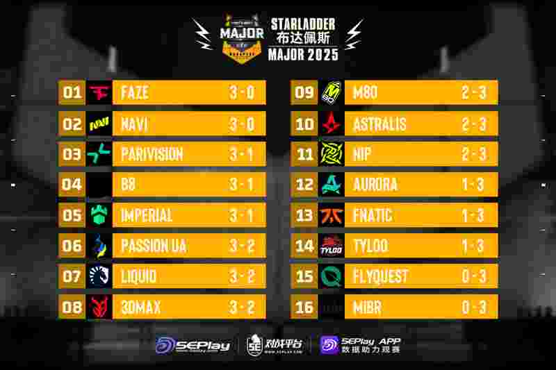 布达佩斯Major二阶段第二日赛果:FaZe全胜!TYLOO面临回家