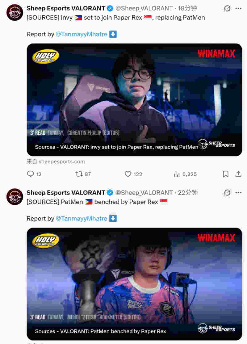 Adrian Jiggs Reyes | invy已经与PRX达成口头协议,下赛季将加盟PRX顶替PatMen的位置。