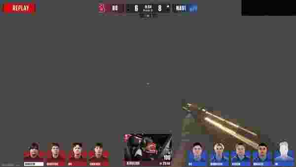NAVI先做进攻方。手枪局,CT双人前压红楼梯没有收益,外场iM单摸找机会拿到双杀,和队友集结和清空外场安全放下雷包,iM四杀拿下手枪局。