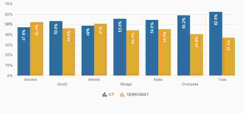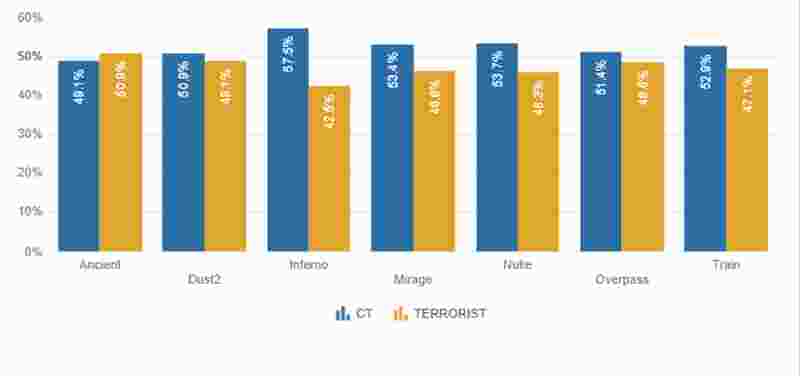 第二阶段:Mirage、Train并列第一,Inferno CT胜率突飞猛进