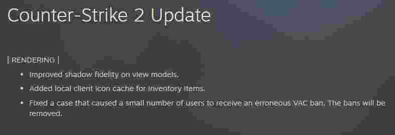 修复了导致少数用户收到错误VAC封禁的问题。这些封禁将会被解除。