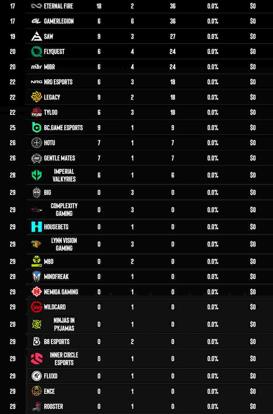 Falcons自IEM 达拉斯站后一直稳居榜首,而