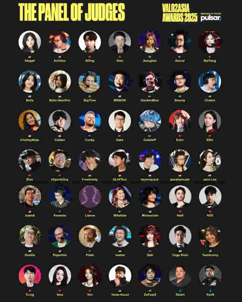 评审团由49名成员组成,包括各赛区知名解说主持和主播,名单如下。