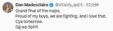 Spirit。一起看看选手们赛后在社媒的动态吧。