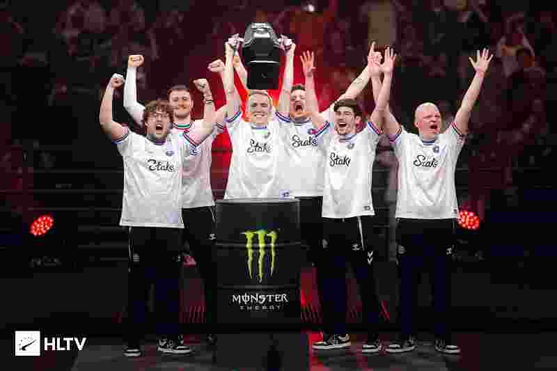 FaZe捧起冠军奖杯。这也是队内明星步枪手ropz职业生涯的第三个Major冠军。