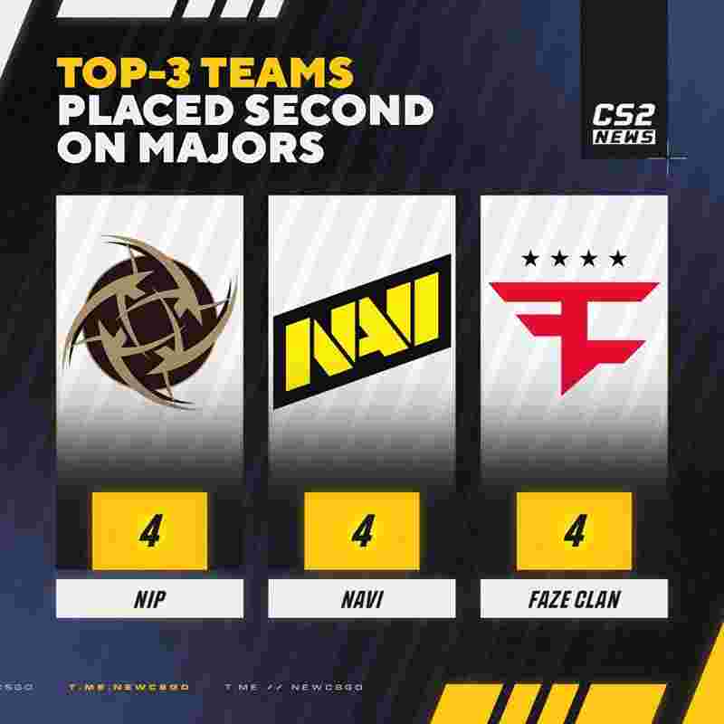 FaZe成为这项成就的尴尬成员。作为CS赛场的传统豪门,这三支队伍均多次跻身Major决赛: