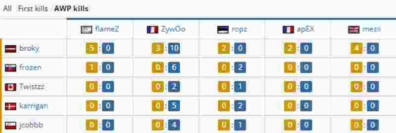 狙击手对位上,ZywOo面对broky打出了10-3的对位数据,如此优秀的发挥也助力ZywOo赢得了本次Major MVP的奖牌。