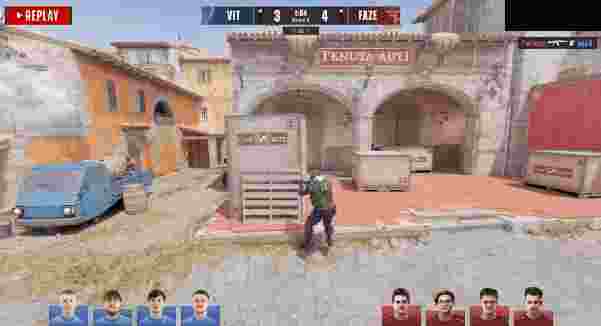 图一为FaZe选图Nuke。FaZe先做进攻方,手枪局FaZe三外场开局,拿下外场控制权后打出夹A,先打出2换2后broky击杀三楼ropz下管道进B下包,B下solo被mezii拿下,但是Twistzz击杀apEX后拍马赶到,死门拉出将mezii击杀,Twistzz帮助队伍拿下手枪局的胜利。次回合Vitality强起失败。第三回合,ropz和mezii手枪皆双杀,但是FaZe拖够时间!FaZe三分开局。第四回合,Twistzz化身正门超人,配合顶级闪光打出双杀,karrigan也打出双杀以示尊重,FaZe将Vitality打至保枪,ZwyOo还没能保枪成功。比分暂时0-4。